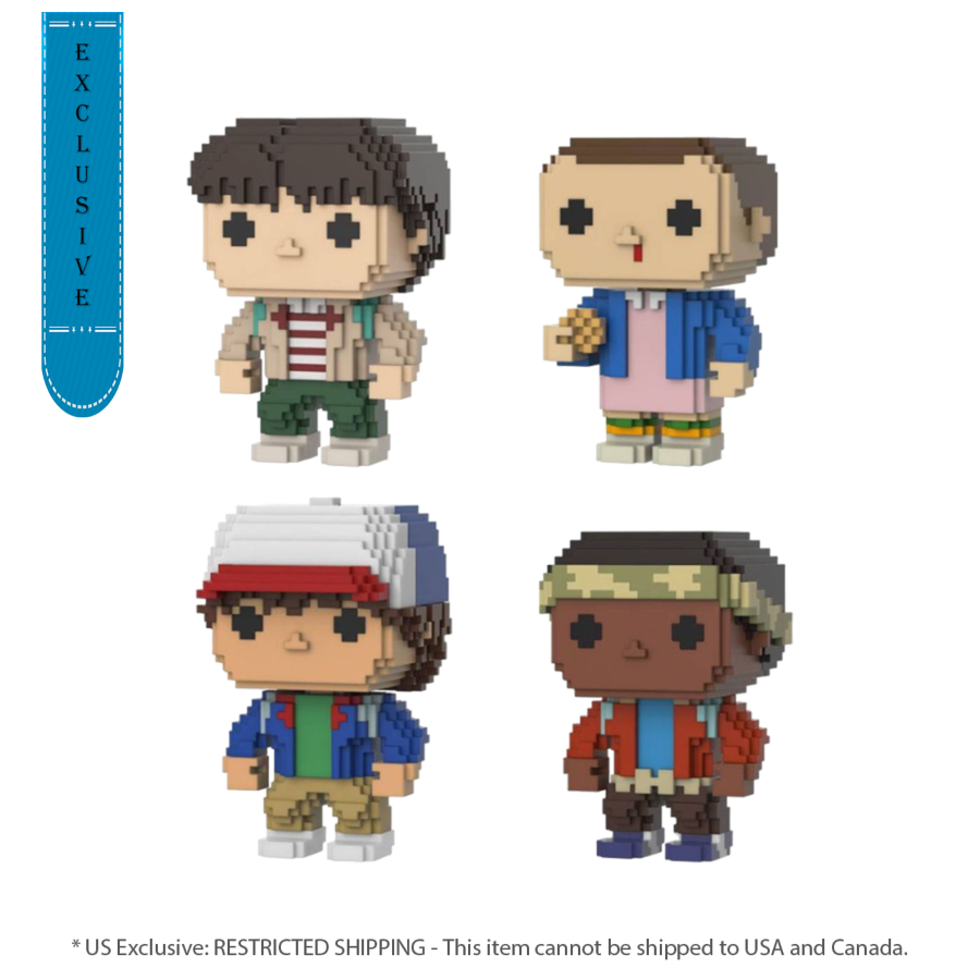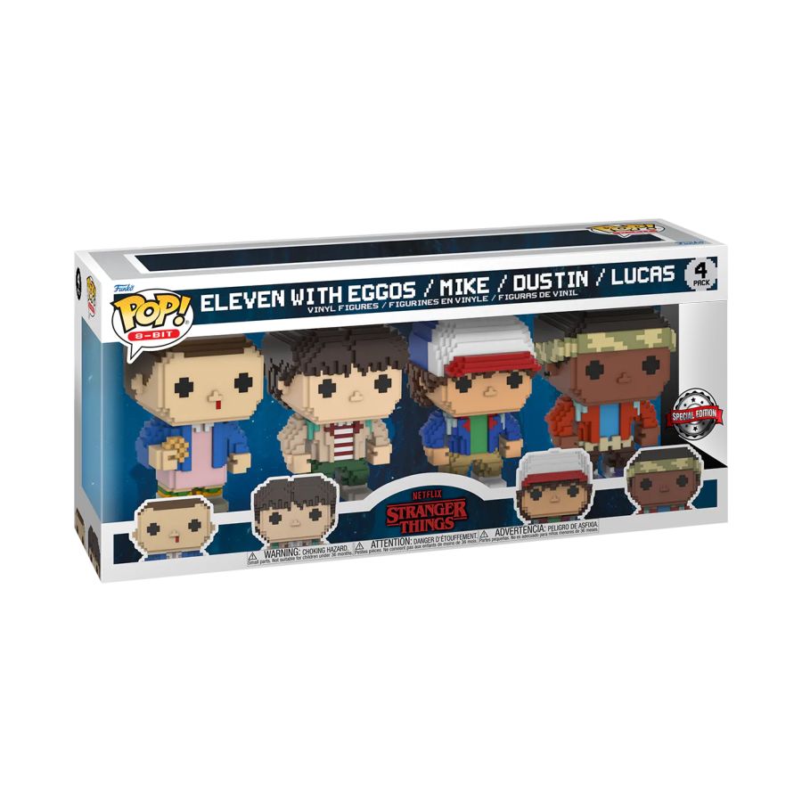 Hawkins, Indiana is harbouring dangerous and supernatural secrets. Bring home the happenings, characters, and breakthrough moments of Stranger Things with your own exclusive, 8-Bit 4-pack Pop! Eleven with Eggos, Pop! Mike, Pop! Dustin, Pop! Lucas. Funko Pop! vinyl figures are approximately 10 cm tall. US Exclusive: RESTRICTED SHIPPING - this item cannot be shipped to USA and Canada. View all