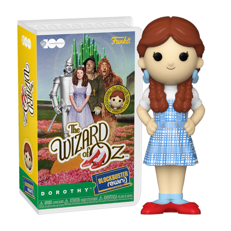 Grab your Ruby Slippers and join REWIND Dorothy on an adventure down the Yellow Brick Road! There's no place like a home in your The Wizard of Oz collection! REWIND collectible comes in VHS-inspired packaging with a matching character card! There's a 1 in 6 chance you may find the chase of Dorothy with Toto. Vinyl figure is approximately 2.7-inches tall. Collectible case is approximately 5.85 H x 3.6 W x 1.65 D. Chase variants are shipped at random. Receiving a chase with purchase is not guaranteed.