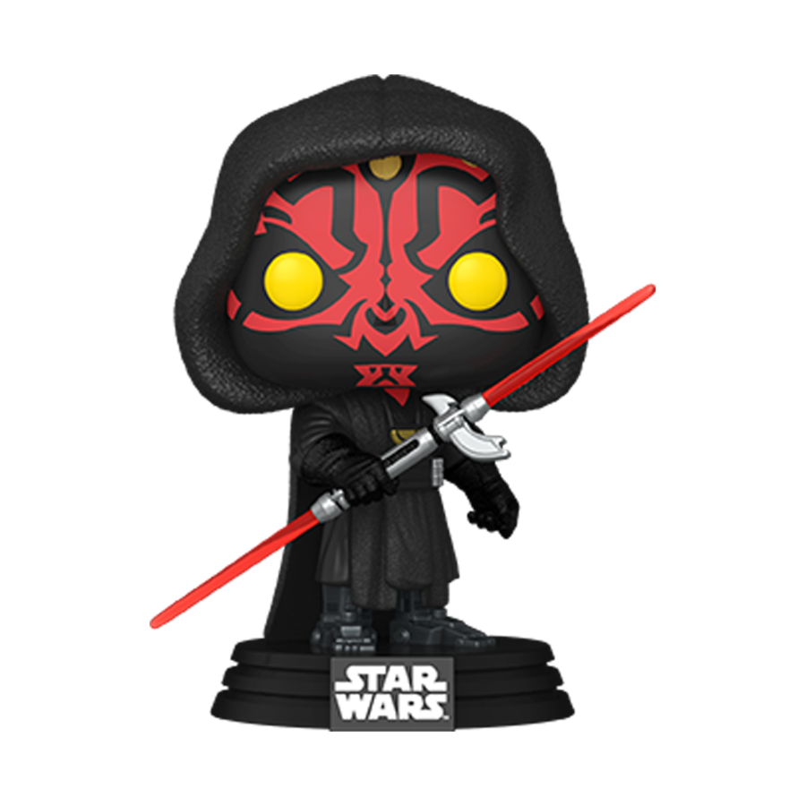 Join the Dark Side with Pop! Darth Maul as he wields his dual-bladed Lightsaber!
