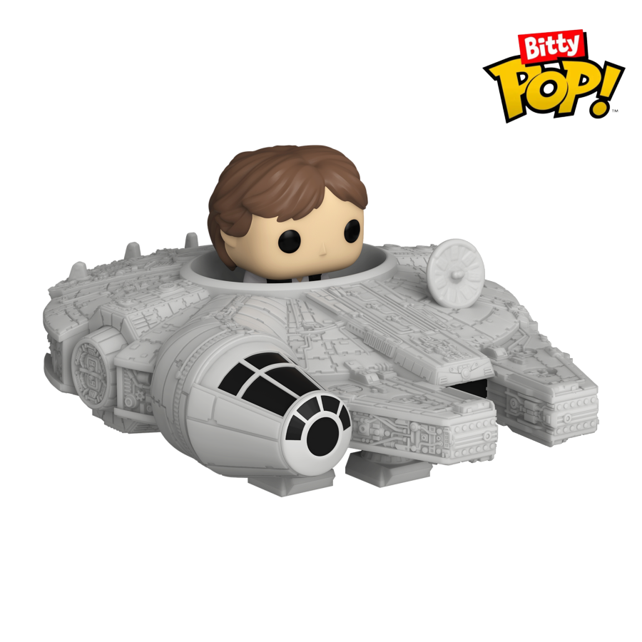 Expand your collection with Bitty POP! Ride Han Solo with the Millennium Falcon!
