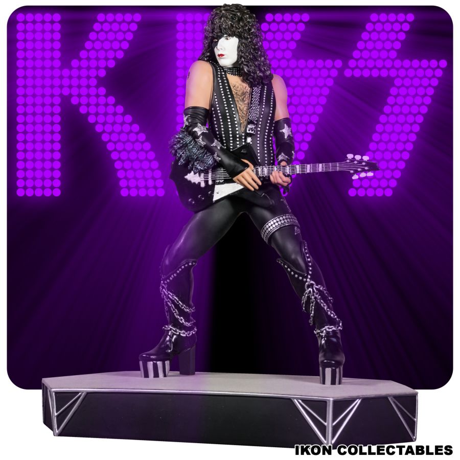 Plucked straight out of 1977 comes four detailed KISS statues of The Demon, Starchild, Spaceman and Catman. From the era that gave us 'Love Gun', KISS's last album to feature the original line up on every song, each of the four members has a stage base the forms together to create the ultimate KISS diorama! Paul Stanley (Starchild) 'Shout it out Loud' with this spectacular representation of Paul Stanley, otherwise known as his on-stage persona 'Starchild'. Rhythm guitarist and co-lead vocalist, Paul Stanley's talent as a front man is enshrined here with striking stance and focused guitar performance. Once the base of this detailed 1/6 scale resin statue is joined to the other three band members, the world of KISS comes together! Be quick, only 500 available worldwide. View all