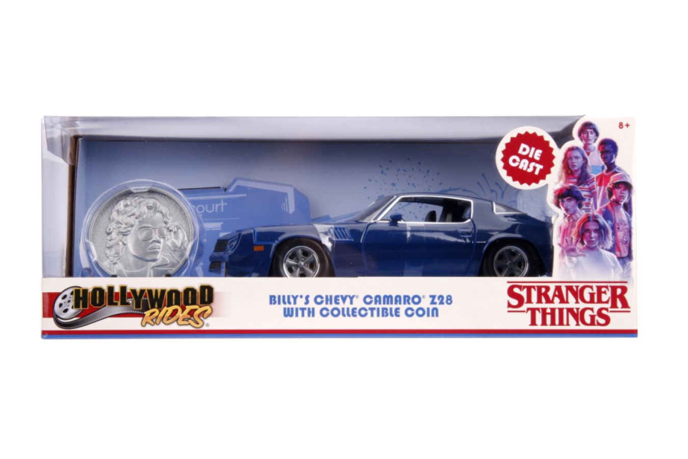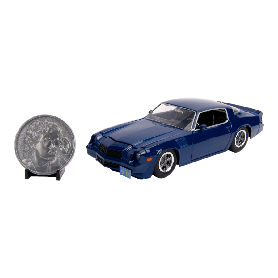 Make your escape from the Upside Down with the Stranger Things 1979 Chevy Camaro Z28. Featuring styling cues directly from Stranger Things, this die-cast replica is sure to be a standout in any Stranger Things collection! Also includes a die-cast collectible metal coin. Collect them all!