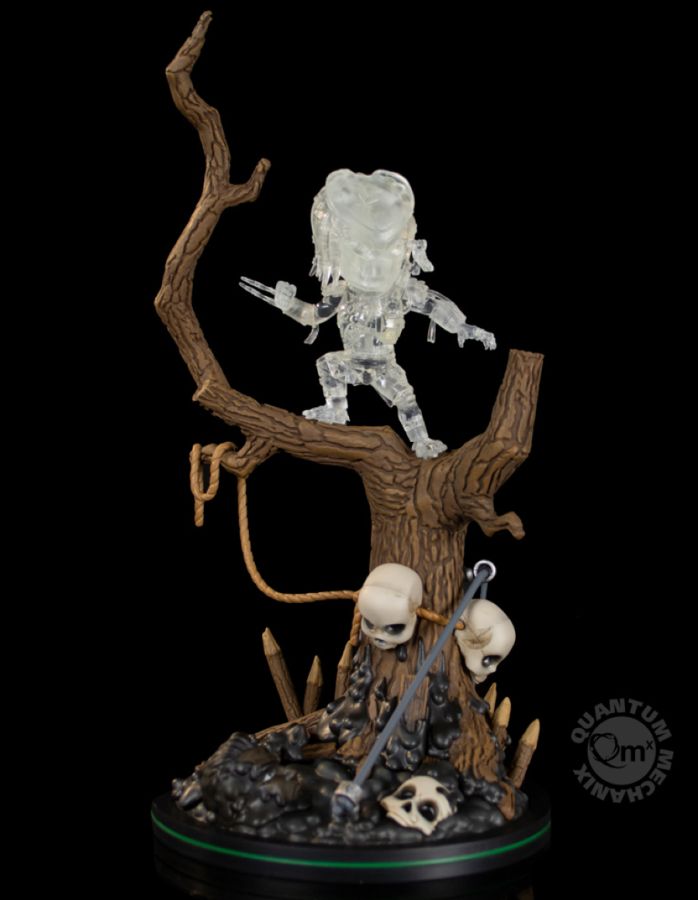 The legendary Predator is one ugly mother... .you know what. But thanks to a cloaking system - also known as a "Shiftsuit" - it can be rendered almost invisible to the naked eye. So while you won ’t necessarily have to stare into its ferocious visage as it hunts you down, it ’s mostly because you ’ll never see it coming. Relive the terror of the Predator hiding in plain sight with the Predator Shiftsuit Q-Fig Max Elite, available exclusively from QMx and select retailers around the world. Based on the titular monster from the seminal sci-fi movie Predator, The Predator Shiftsuit Q-Fig Max Elite recreates the iconic scene where the extra-terrestrial warrior stalks our hero, Major Dutch Schafer. In this exclusive version, the Predator has engaged its cloaking system high above in the trees while Dutch hides in the mud below. Completely translucent, the Shiftsuit Predator warps the light around his body leaving only a small visible silhouette. If it moves, you just might be able to catch a glimpse. But if you move, well that ’s game over, man. Oops, sorry - wrong scary alien movie. The Predator Shiftsuit Q-Fig Max Elite stands nearly 7 inches tall from the muddy and skull-adorned display base to the very top of the gnarled and knotted tree. Individually numbered and limited to just 5000 pieces. View all
