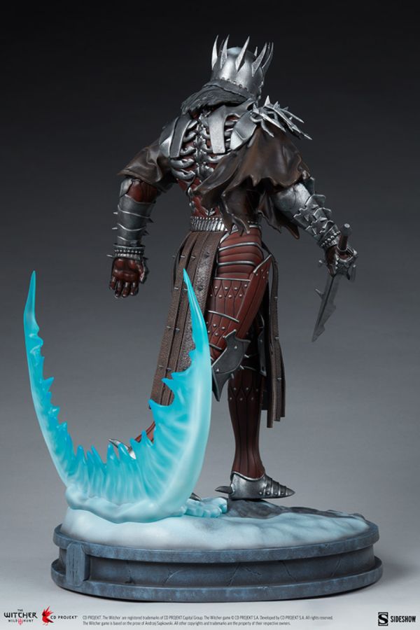 "The king is dead, long live the king." Sideshow presents the Eredin Statue, on the hunt through your world of Witcher collectibles. Based on the villain's ghastly appearance in the hit fantasy video game The Witcher 3: Wild Hunt, the Eredin Statue measures 19.5" tall and 12.5" wide on an ice-themed base evoking the apocalyptic White Frost. The King of the Wild Hunt steps from a portal in his pursuit of Ciri, whose magic he desires to harness to save his people. The polystone Eredin Statue features a fully sculpted costume expertly recreating the frightening details of his armor design from head to toe. Forged to give the elven Eredin Bréacc Glas the appearance of a monstrous wraith, the red elements of his armor suggest the idea of flayed muscle while the spiked silver pieces recreate the form of a skull and ribcage. Sculpted belts and sleeves capture the complex textures of moving fabric and leather, giving even more depth to the antagonist ’s intimidating silhouette. He clutches a silver sword in his right hand, ready to stand against Geralt of Rivia and Yennefer of Vengerberg in his path to total conquest. Begin the Wild Hunt and let the Eredin Statue lead your collection today! View all