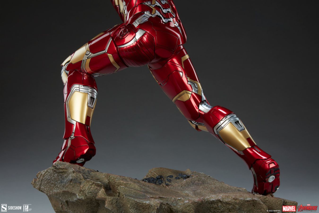 "Sentry mode!" Sideshow presents the Iron Man Mark XLIII Maquette, created in partnership with Legacy Effects to deploy an impressive addition to your universe of Marvel collectibles. Just as Tony Stark continually upgrades his suits, the Iron Man Mark XLIII Maquette is a color variant of the sold-out Mark XLII suit, featuring an updated dark red, silver, and gold paint scheme. This quarter-scale maquette measures 20" tall and 16" wide, as Iron Man takes a dynamic stance on a rocky base, his complex armor on full display. Based on the suit ’s cinematic appearance in Avengers: Age of Ultron, this Marvel collectible is packed with realistic detail and intricate sections of armor to truly capture Tony Stark ’s iconic designs. The polyresin Iron Man Mark XLIII Maquette also includes light-up features in the eyes, arc reactor, and hand repulsors, giving you an exciting additional display option in your hall of armor. Suit up your Marvel Cinematic Universe collection and bring home the Iron Man Mark XLIII Maquette today. View all